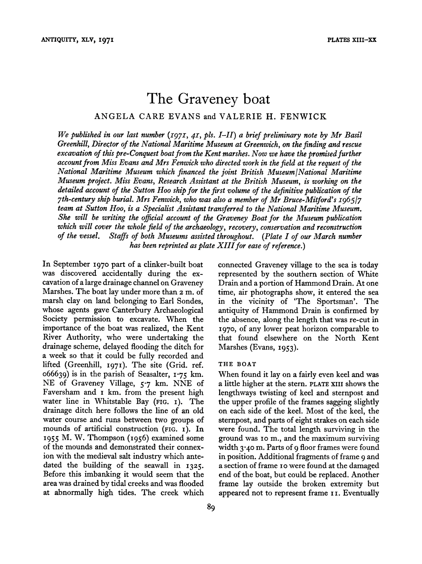 Read The Graveney boat by Angela Care Evans and Valerie Fenwick, published by Cambridge University Press in 2015 in Antiquity , Volume 45, Issue 178.