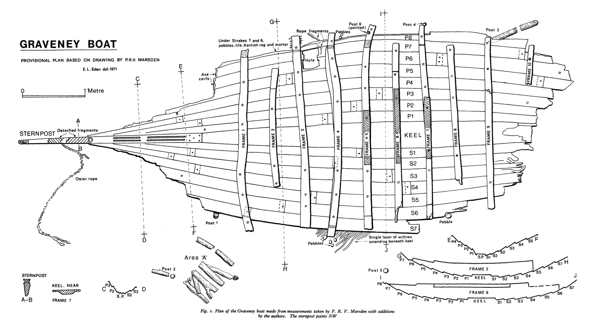 The Graveney, a rare example of an Anglo-Saxon clinker-built boat, dated to circa 895AD, lay hidden under more than 2 metres of marsh clay for over 1000 years, until it was discovered by chance in 1970, during the widening and deepening of Hammond’s Drain on the Graveney Marshes, in Kent.